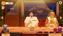 The Night Soup — это сюжетный кулинарный симулятор, где вы откроете свой ночной ресторан. Опытный шеф-повар и ресторатор Натан решает открыть заведение, которое заведомо станет конкурентом всем существующим кафе, ведь его время работы будет с 22:00 до 7:00. Вам предстоит умело распоряжаться своим бизнесом, чтобы привлекать внимание посетителей и оправдать их ожидания, подавая только лучшие блюда из качественных ингредиентов.