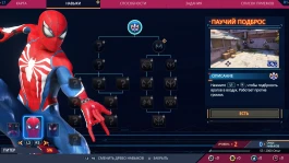 Питер и Майлз – разные, но вместе они как огонь и вода. У Питера есть железные лапы от симбиота, которыми он крушит всё подряд, а Майлз бьёт током и умеет становиться невидимым. Переключаться между ними можно прямо в игре, и у каждого свои задания. Например, Питер гоняется за Крэйвеном, а Майлз помогает жителям Квинса. Боёвка тут быстрая и плавная – уклоняетесь, бьёте с воздуха, используете гаджеты вроде паучьих мин или звуковых ловушек. Навыки прокачиваются через три ветки: одна общая и по одной для каждого героя. Ещё есть "паучий рывок" – штука, чтобы мгновенно рвануть к врагу или уйти от удара.