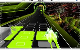 Вы же можете загрузить любую песню и практически в любом формате, и выбрав ее, направиться на генерирующийся в автоматическом режиме трек. Трасса будет формироваться таким образом, чтоб все ее повороты, преграды, горки и спуски соответствовали ритмам выбранной вами песни. Попутно на трассах разбрасываются специальные тактовые блоки, которые нужно собирать. Собирая их, вы будете получать очки, и по итоге набранных очков будете занимать общую рейтинговую позицию в списке проехавших такую же трассу игроков.