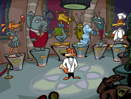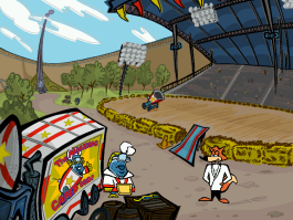 Геймплей — классический квест с элементами шпионажа и тонкой самоиронии. Нужно маскироваться под шеф-повара, взламывать системы и разгадывать забавные головоломки, попутно взаимодействуя с колоритными персонажами: от эксцентричного каскадёра «Плащеносного Трескуна» до бывшей официантки Беатрис. Локации на выставке — это мини-миры с уникальной механикой: в одном павильоне разбираетесь с мутировавшими растениями, в другом — участвуете в космической аркадной мини-игре.