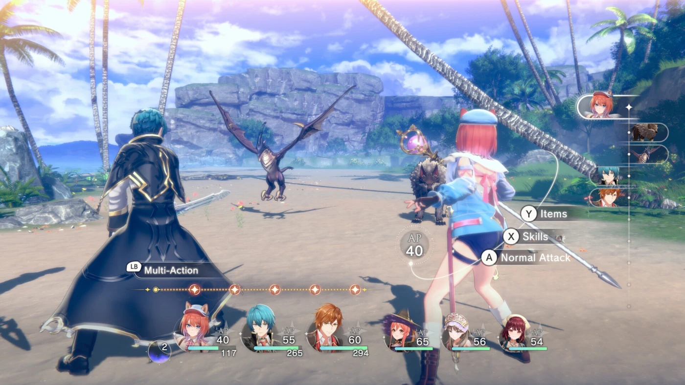 Боевая система вернулась к корням серии: всё пошагово, но с интересными нюансами. Вы видите порядок ходов, строите тактику, используете обычные атаки, навыки и зелья. Ключевая фишка – система Unity: заполняя шкалу, можно объединять действия персонажей, нанося серию ударов одновременно. А если правильно сочетать элементы – например, молнию и лёд – получите бонусную атаку с уроном в разы выше. Это превращает бой в головоломку, где важны не только силовые показатели, но и комбинации. Ещё в боях можно частично блокировать урон, если успеть нажать в нужный момент – или включить автоблок для спокойного прохождения.