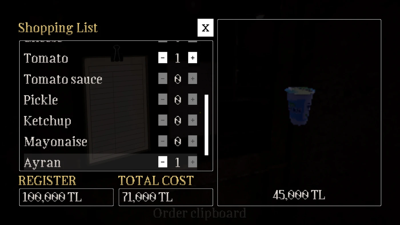 Tostchu – атмосферный хоррор с элементами управления мини-кафе, где вы становитесь временным управляющим тостовой в глухой деревне в Центральной Анатолии, Турция, девяностые. Ваш отец уезжает, оставляя вам ключи, холодильник и простое задание: держите бизнес на плаву. Каждый вечер вы открываете ставни, принимаете заказы, жарите хлеб с сыром, колбасой или яйцом, считаете деньги и планируете закупки на завтра. На первый взгляд – рутина. Но постепенно что-то начинает идти не так.