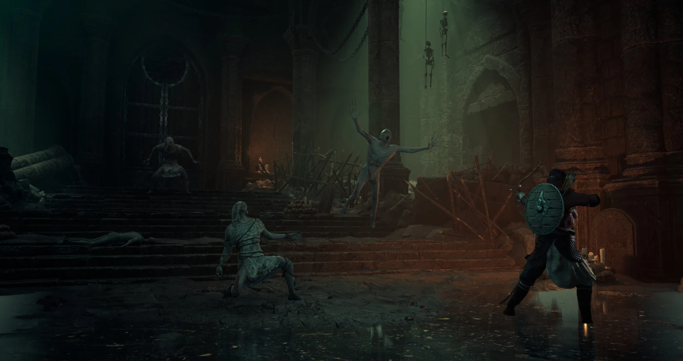 Боевка здесь быстрая, но не всегда честная. Чтобы выжить, приходится переключать оружие – например, блокировать стрелы щитом, а потом отвечать из лука. Есть система парирования и специальные приёмы, которые активируются при заполнении счётчика. Когда срабатывает ярость, Мехран врывается в толпу врагов с сериями ударов, почти неуязвимый. Но чувствительность хромает: часто кажется, что ты попал, но урон не засчитывается. Коллизии не всегда совпадают с анимацией, из-за чего некоторые удары проходят сквозь врагов.