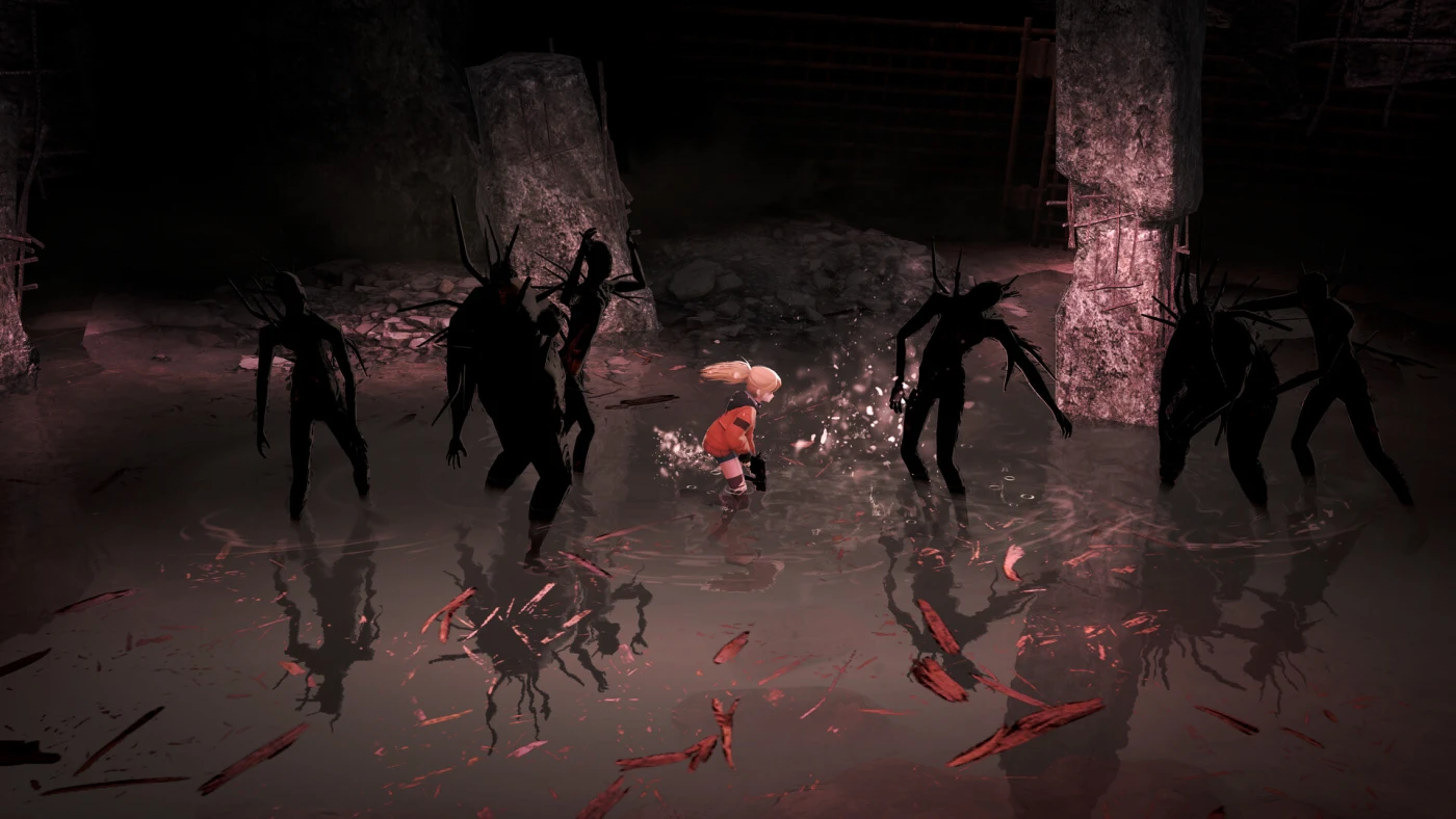 Полли вооружена скейтбордом и пистолетом, перезаряжающимся у источников света. Атаки требуют выносливости – один-два удара, и уже нужно отступать, чтобы восстановиться. Позже появляются дробовик, гранатомёт и пулемёт, но носить можно только одно дополнительное оружие. Боеприпасы редки, а враги бросаются со всех сторон. Маски, снятые с поверженных, открывают новые пути и ритуалы. Ещё есть шепты – заклинания, которые позволяют вызывать шипы или даже летать, если разобраться, как управлять полётом.