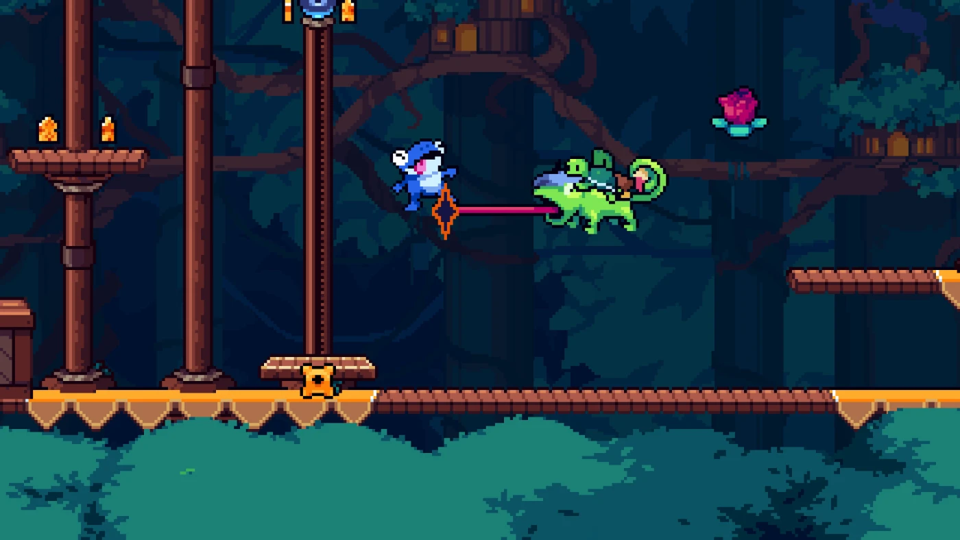 Марблз парит в воздухе после прыжка, а Чекерз может с грохотом впечатываться в землю или запускать утёнка ввысь, открывая доступ к недосягаемым платформам. Эти простые механики раскрываются постепенно: уже в первом уровне игра показывает всё, а дальше доверяет вам самим собирать цепочки действий – парить, бросать, отскакивать, заряжать атаки для ускорения. Уровни перемежаются поездками на дельфине, летучей мыши или даже «вагонетках» на спине щенка, отсылая к Donkey Kong Country без потери собственного ритма.