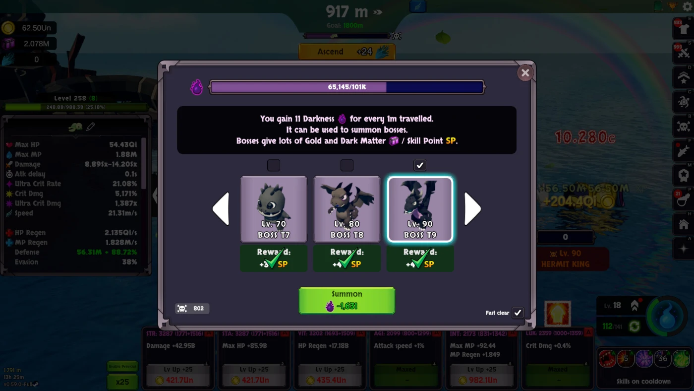 Вы не одиноки в этом путешествии. По пути призываете спутников – от дельфинов и единорогов до гигантских кальмаров. Каждый даёт особую способность и меняет тактику: кто-то усиливает атаку, кто-то защищает, а кто-то просто радует глаз. Есть и рыбалка: между боями можно закинуть удочку, поймать редкий трофей, продать его или оставить как источник пассивного бонуса. Улучшенная снасть ловит настоящие сокровища – и всё это работает даже тогда, когда вы не в игре.