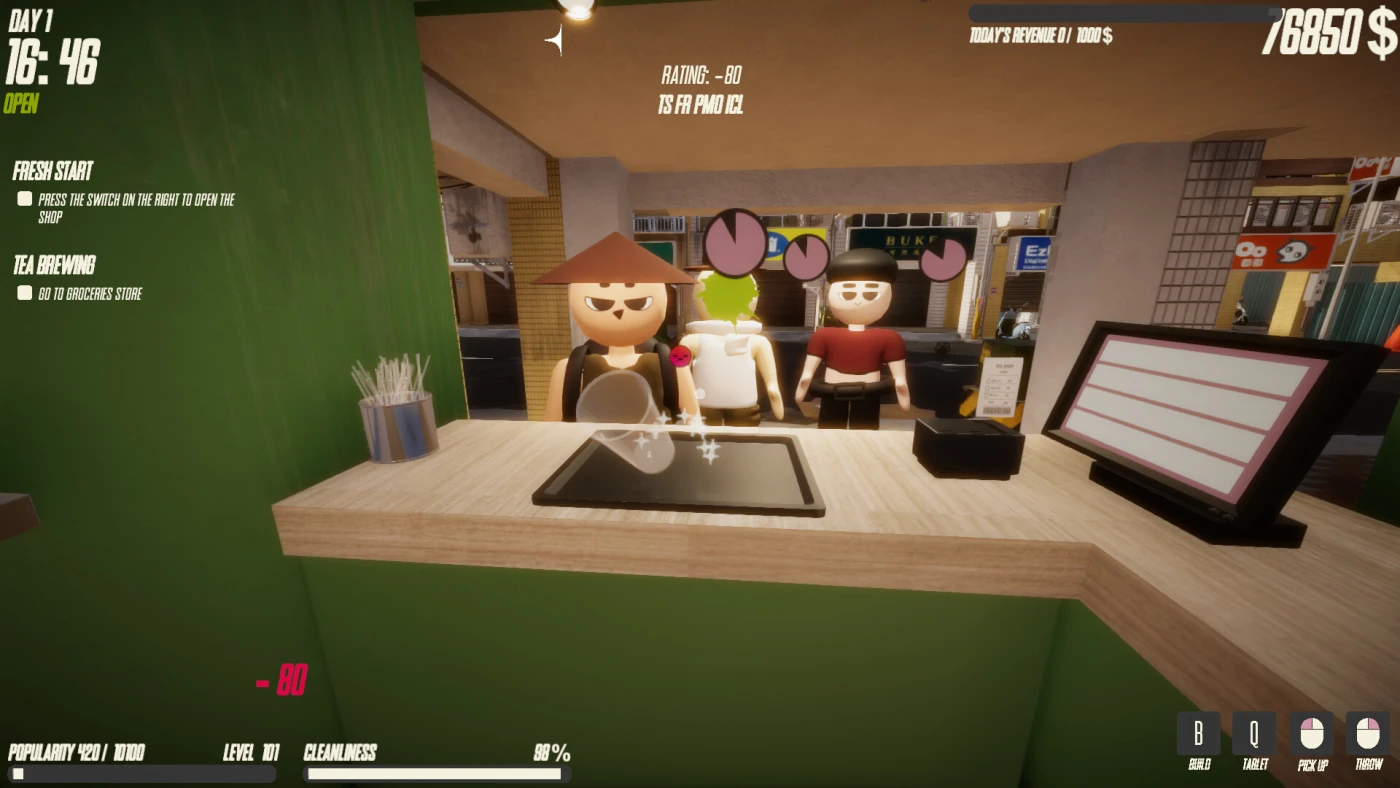 Интерьер вы обустраиваете сами: расставляйте мебель, вешайте гирлянды, ставьте неоновые вывески – создавайте чайную мечты. Новые рецепты и миссии открываются по ходу игры, а каждое умное решение (например, куда вложить прибыль) влияет на будущее вашего бизнеса. Пусть клиенты пока не заходят внутрь, но ваш магазин всё равно станет самым фотогеничным в городе. У нас вы можете скачать Boba Tea Shop Simulator торрент последнюю версию бесплатно на компьютер.