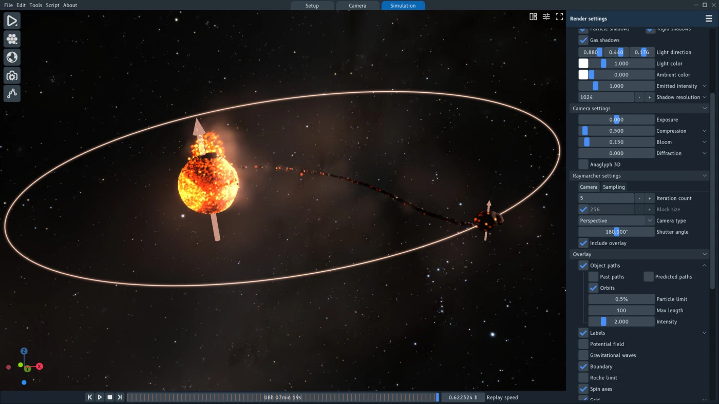 Программа предлагает впечатляющую гибкость: вы можете настраивать планеты, звёзды, галактики и даже задавать гипотетические сценарии – например, столкновение материи и антиматерии. Визуализация поддерживает гравитационное линзирование, раскраску частиц по физическим параметрам, отображение пределов Роша и потенциальных ям. Есть два движка рендеринга, запись видео в H.264 и экспорт в Alembic или OpenVDB – всё для того, чтобы изучать и делиться своими космическими экспериментами.