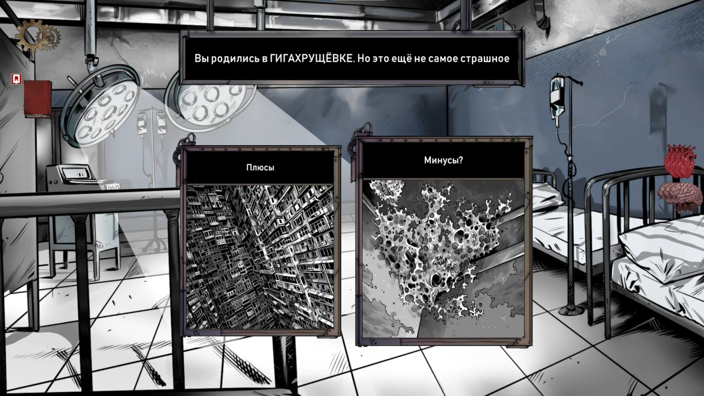 Игра мастерски передаёт атмосферу советпанка: серые стены, военно-бытовой юмор, аномалии после Самосбора и тревожная музыка, вплетающаяся в повседневность. Сюжет разворачивается от рождения героя до его самых диких приключений, а стильные 2D-иллюстрации и качественный звук делают погружение почти полным. Несмотря на простую механику – выбор из диалоговых опций – игра удивляет глубиной: решения влияют не только на исход, но и на характер, здоровье и отношения с другими обитателями Гигахруща.