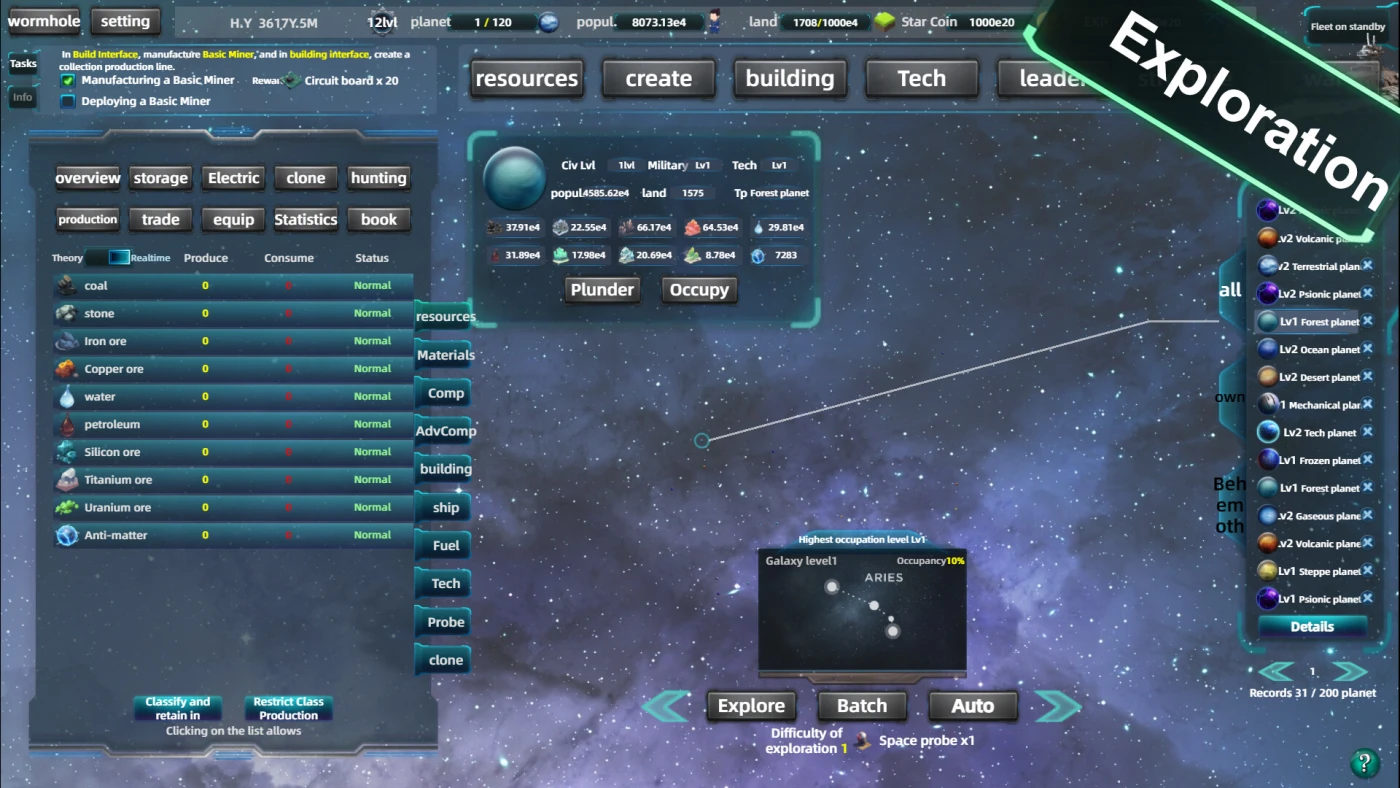 Space Industrial Empire – стратегический кликер с элементами индустриального строительства, где вы создаёте космическую империю от первого шахтёра до гигантской звёздной сверхдержавы. Всё начинается с простой добычи ресурсов, но уже скоро вы строите автоматизированные линии, исследуете технологии и запускаете производство на десятках планет. Игра упрощает сложные механики: вместо запутанных трёхмерных конвейеров – понятная плоская система, где каждый объект легко разместить и настроить.