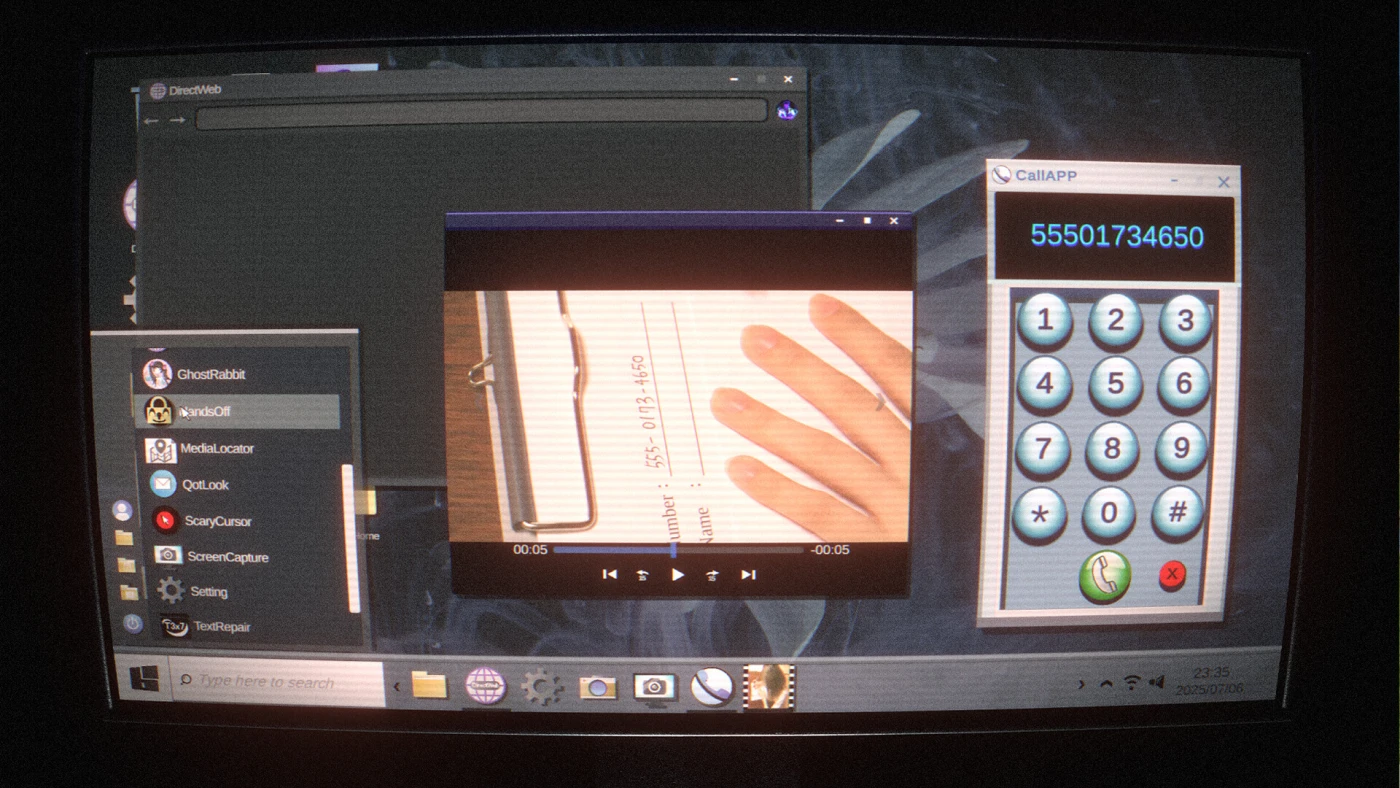 Интерфейс точно имитирует реальную ОС: вы кликаете по ярлыкам, запускаете программы, пересматриваете записи с камер. Никаких подсказок – только вы, файлы и давящее ощущение, что за вами наблюдают. Информация раскрывается фрагментарно: кусочки разговоров, странные метки в текстах, повторяющиеся даты. Постепенно складывается картина, но не ясно – что делать дальше. Даже если понимаешь правду, система почти не даёт обратной связи. Вы действуете вслепую.