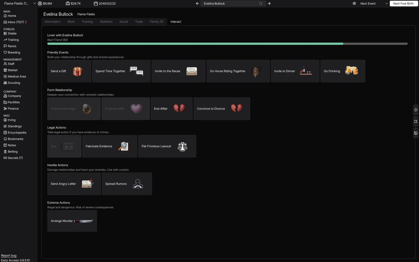 Horse Racing Manager – это глубокий симулятор управления конюшней, где вы строите империю с нуля: от первого жеребёнка до легендарного победителя на крупнейших треках мира. Здесь всё решают ваши решения, как в генетике будущих чемпионов, так и в тактике заездов. Система псевдо-ДНК позволяет скрещивать лошадей с учётом наследуемых черт, характера и способностей, превращая племенное дело в настоящую науку. Хотите – берёте быстрого жеребца напрокат, хотите – строите династию, передавая талант из поколения в поколение.