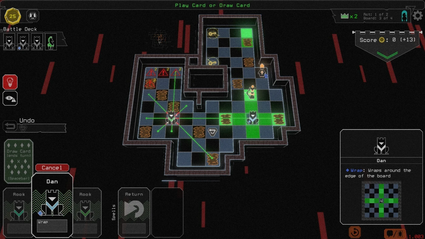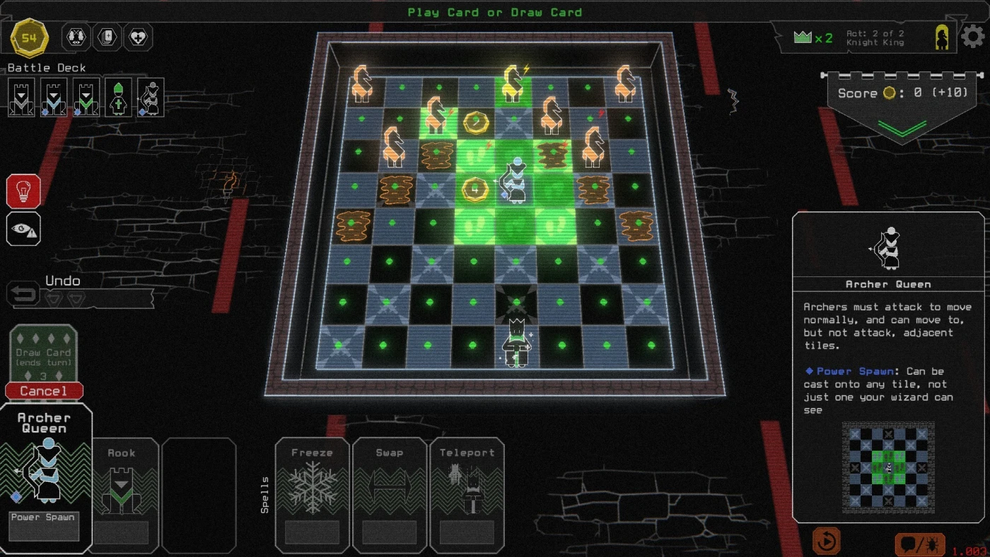 Below the Crown — это роглайт с шахматными механиками, где вы спускаетесь в случайно генерируемые подземелья и сражаетесь на небольших комнатах-пазлах. Вы играете за волшебника, который может быть королём, слоном, конём или другой фигурой и призывает на поле остальных из своей колоды карт. В каждой комнате нужно либо поставить мат вражескому королю, либо провести своего к выходу, либо заставить противника сдаться. Ходы пошаговые, фигуры двигаются по привычным правилам, но при этом есть дополнительные заклинания и необычные юниты, которые сильно меняют расклад.