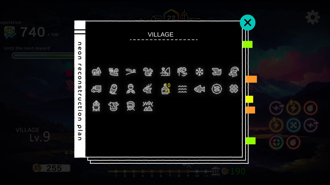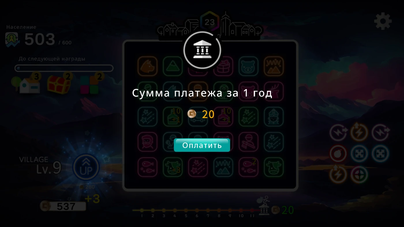 Neon Village — это необычная смесь пазла «три в ряд» и рогалик-конструктора колоды. Вы собираете свою яркую неоновую деревню, набирая в колоду уникальных жителей, диких животных, машины и разные привлекательные части. Каждый ход меняете панели местами, чтобы собрать три одинаковых цвета и получить монеты или активировать эффекты. Правильные сочетания дают мощные синергии, а от них зависит, насколько быстро растёт ваша деревня и справляетесь ли вы с выплатами банку.