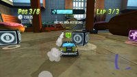 Самое же главное достоинство этой игры заключается в динамичности происходящего на трассе и разнообразии. Во-первых, гонять вы будете ведь не по обычным трассам, а по имитированным, созданным руками ребенка. Вам придется гонять по детской комнате, объезжая игрушки, врезаясь в другие игрушечные автомобили, и не только. Во-вторых, на каждой трассе вас будут ждать преграды, которые также смогут изрядно подпортить вам нервы. Например, внезапно на трассе может появиться бильярдных мяч, крушащий все вокруг, или консервная банка-трамплин, или еще что. Ну а в-третьих, вас на каждом маршруте будут ждать еще и дополнительные испытания, бонусы, и многое другое.