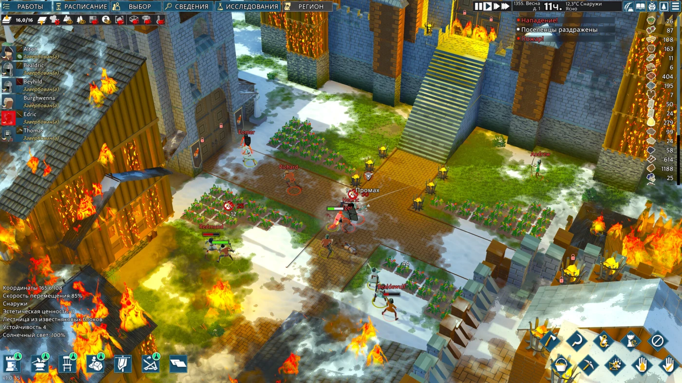 Естественно, придется и защищать поселение. Это ведь Средневековье. Тут вам и варвары, и разные захватчики, и бандиты с разбойниками, и не только. Поселенцы будут нуждаться в защите, и вы должны будете им ее дать. Используйте защитные вооружения, стройте башни, расставляйте ловушки и защищайте своих подданных, чего бы вам это не стоило. А еще у вас и ваших подданных будут и другие. не менее опасные враги, вроде стихийных бедствий и самой природы. Тут уж тоже придется думать, действовать – запасайтесь едой, чтоб люди не умирали от голода, принимайте путешественников, чтоб они помогали вам укреплять город, и не только.