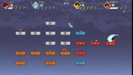 Игровой процесс в целом довольно прост. Есть персонажи, каждый из которых прикосновением окрашивает блоки в свой цвет. Есть уровни, двигающиеся вертикально, состоящие из рядов с блоками, которые как раз-таки и нужно окрашивать. И вот, вам нужно прыгать вверх и в бока, вправо или влево, стараясь разукрасить блоки в свой цвет, и не дав противнику сделать то же самое с вашими блоками в самый последний момент, перед тем, как блоки засчитаются. Постепенно скорость движения уровня увеличивается, и из-за этого становится конкурировать все сложнее…