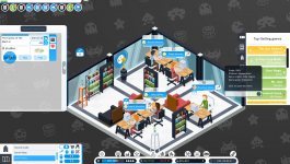 Дальше уже все как по маслу. Заработав денег на развитие бизнеса, вы сможете арендовать помещение или же даже построить свое собственное здание с нуля. В помещениях своего офиса, компании, вы будете отвечать за все без исключения: за питьевую воду, энергоснабжение, комфортабельность диванов и кресел, продуманность рабочих мест, планировку помещений и не только. Но не стоит переживать, ведь в вашем распоряжении будет все необходимое, включая доски для рисования, столы, стулья, книжные полки, цветочные горшки, различные декорации и многое другое.