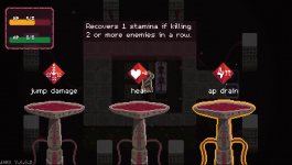 Отправляйтесь в множество комнат и столкнитесь с десятком врагов со своими уникальными особенностями передвижения. Каждая новая локация будет меняться и становится все более устрашающим, словно вы спускаетесь все глубже в подземелье. В комнате с тремя кровавыми чашами прокачивайте дополнительные навыки и характеристики, увеличивающие ваш урон или повышая защиту.