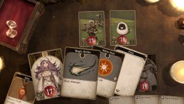 Игровая механика интуитивно понятна и очень дружелюбна по отношению к новичкам, которые ранее не сталкивались с подобным жанром. Вместе с этим внутриигровой туторил подробно рассказывает о всех особенностях: начиная о передвижении вне боя и заканчивая самой боевой системой. Она происходит по типу карточного сражения, где у вас находится карта персонажа и его атак, а на столе лежит карта противника, где отображено его здоровье, наносимый урон и статус защиты. Выбирайте какой прием хотите использовать и применяйте его, тратя при этом карту и так до победного конца.