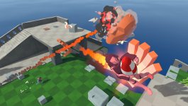 У игроков с компьютеров есть возможность ловко перемещаться по карте за счет своего небольшого размера. Прячьтесь за объектами и атакуйте противника ракетами и бомбами. Уворачивайтесь от летящих в вас предметов, иначе рискуете получить оглушение и даже своевременно умереть, закончив сессию.